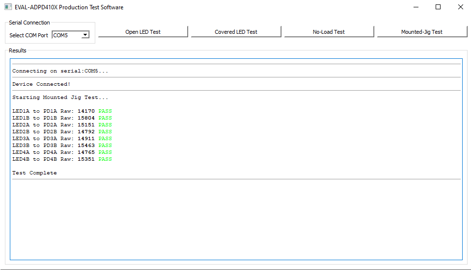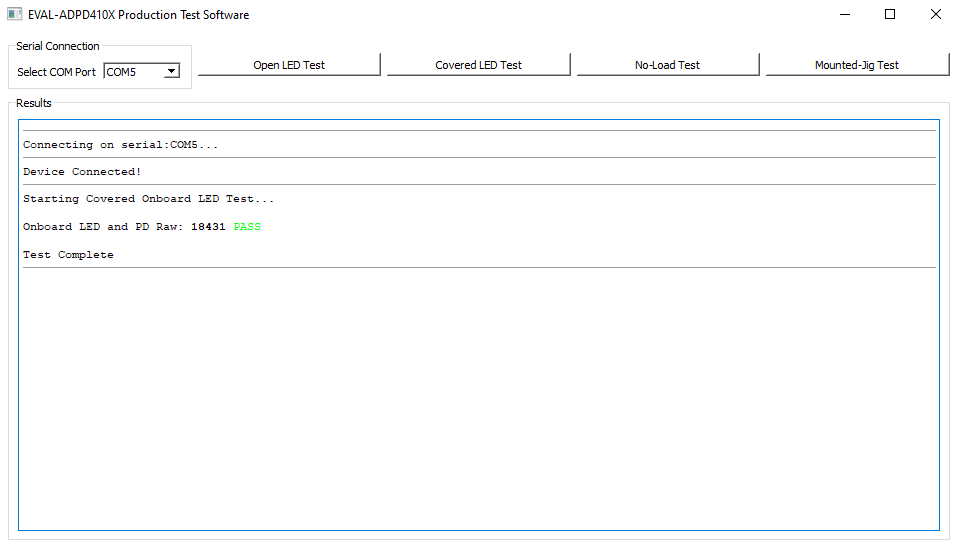 This test checks if the sampled raw ADC value has significantly increased from the standard uncovered value. A sample passing result is shown below.