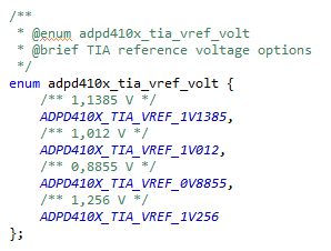 The reference voltage of the Trans-Impedance Amplifier (TIA) is configurable. Below are the possible values: