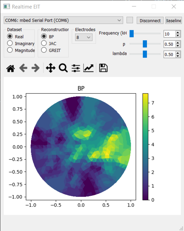 7. Select the type of dataset, type of image reconstruction, number of electrodes, and set the frequency.