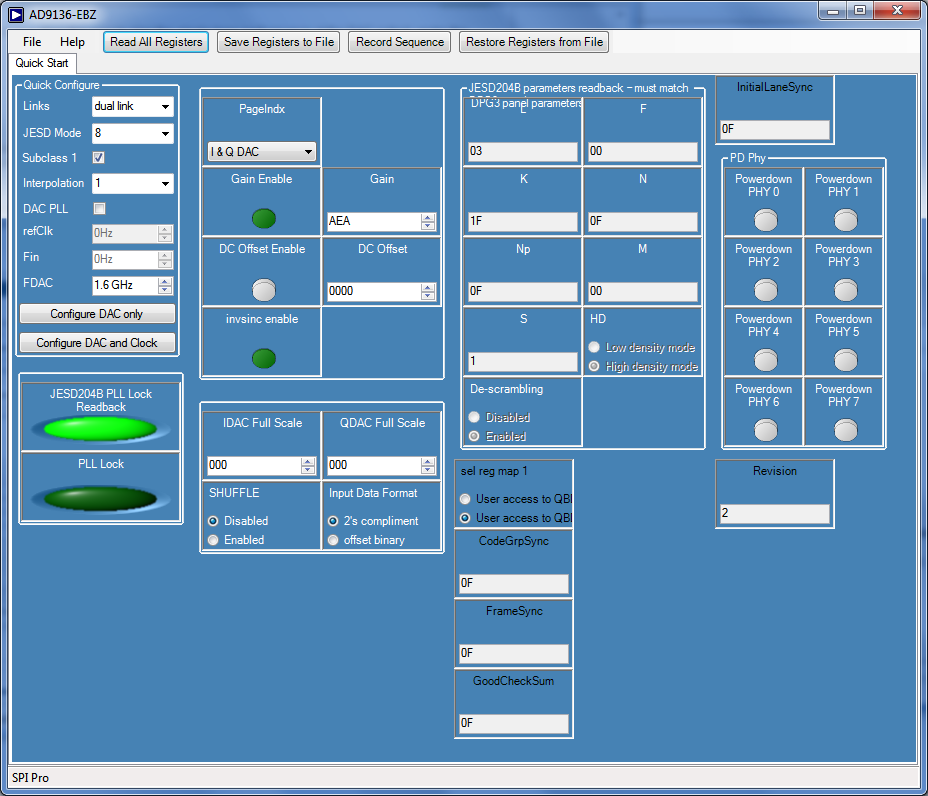 Figure 10 Configured panel of the AD9136/AD9135 SPI software