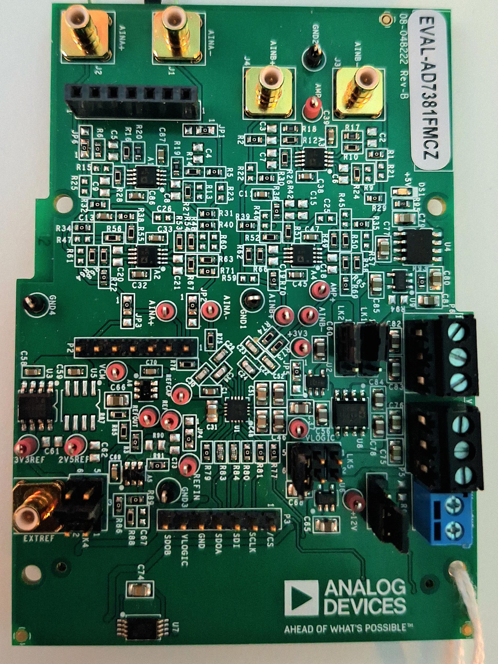The EVAL-AD738xFMCZ evaluation board enables quick and easy evaluation of the performance and features of the AD738x family of devices.