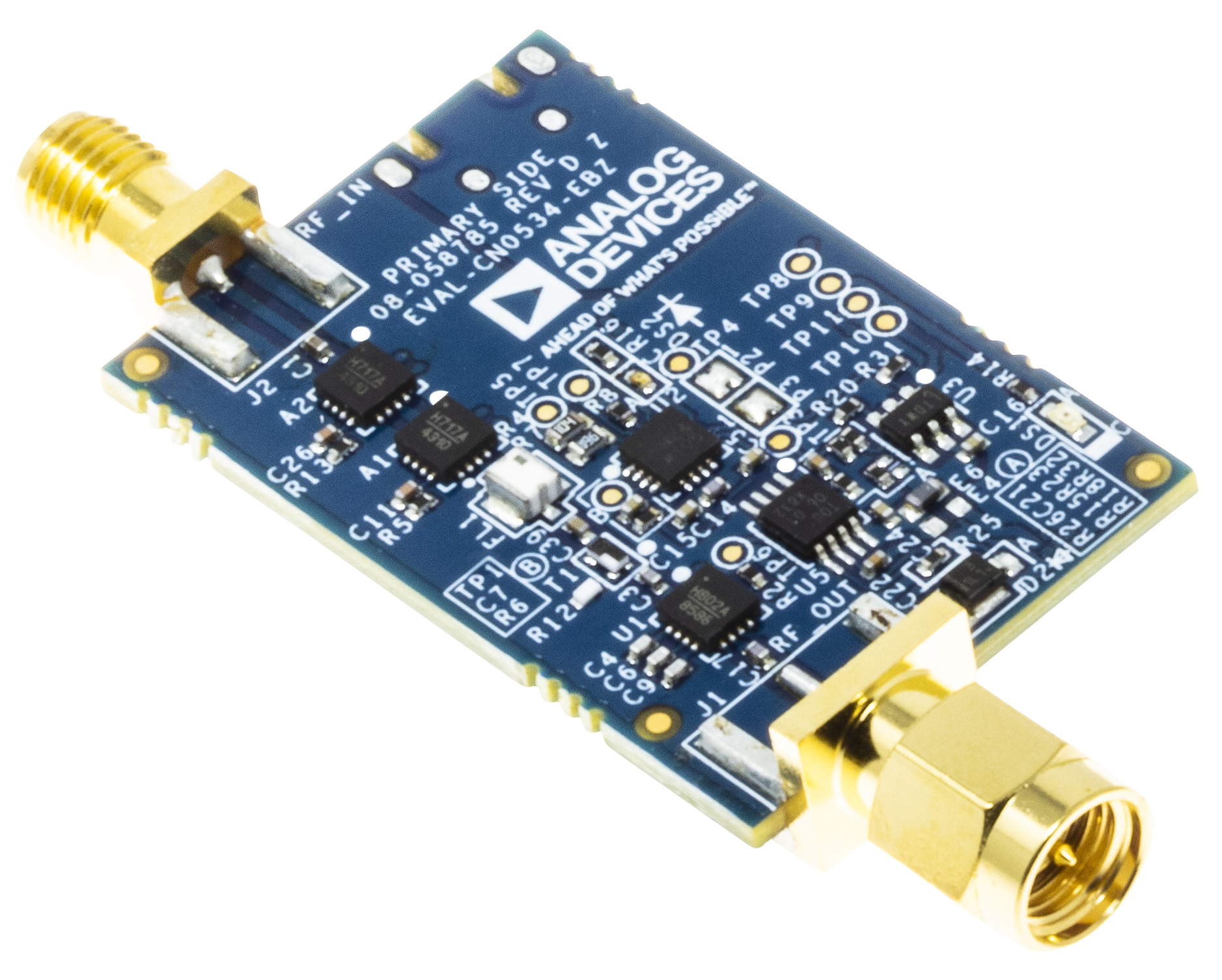 Connecting the EVAL-CN0534-EBZ Board directly to the input (Rx) of a radio or other piece of RF equipment may exceed the absolute maximum ratings for the RF Input. (which is +2.5 dBm for the ADALM-PLUTO). Doing this may permanently damage the input.