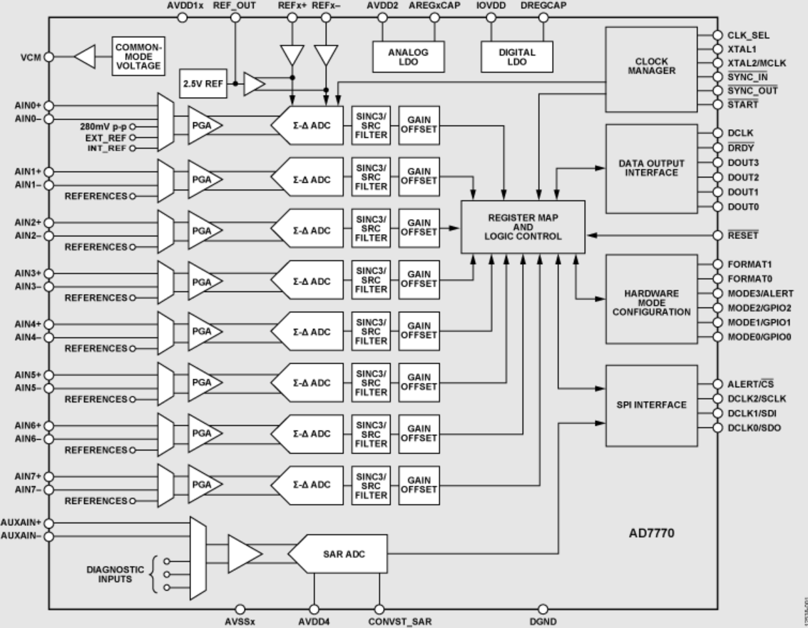 • 12-bit SAR ADC for diagnostics (AD7779)