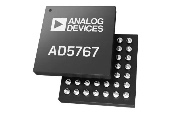 The AD5766/AD5767 are 16-channel, 16-/12-bit, voltage output digital-to-analog converters (DAC). The DACs generate output voltage ranges from an external 2.5 V reference. Depending on the span selected, the mid-point of the output span can be adjusted allowing for a minimum output voltage as low as -20 V or a maximum output voltage of up to +14 V.