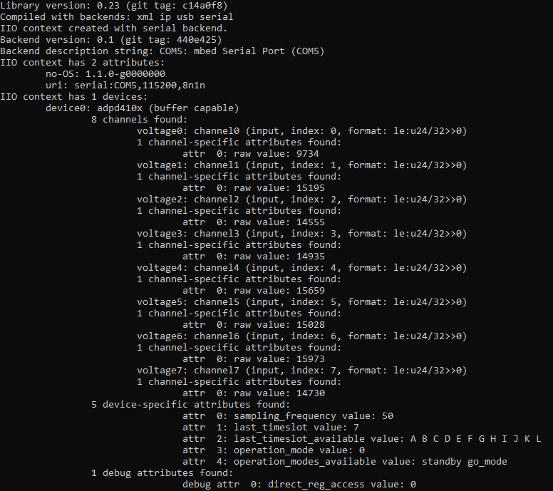 iio_attr -u serial:COM4  -c adpd410x voltage0 raw