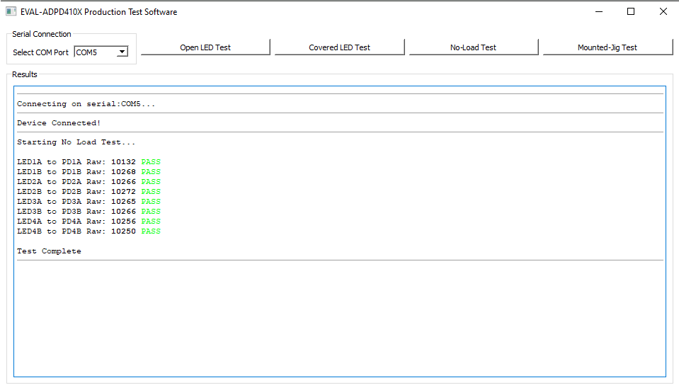 This test checks if the sampled raw ADC value has significantly increased from the standard uncovered value. A sample passing result is shown below.