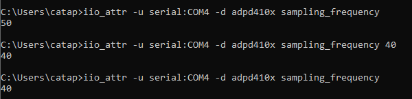 iio_attr -u serial:COM4 -d adpd410x sampling_frequency 40