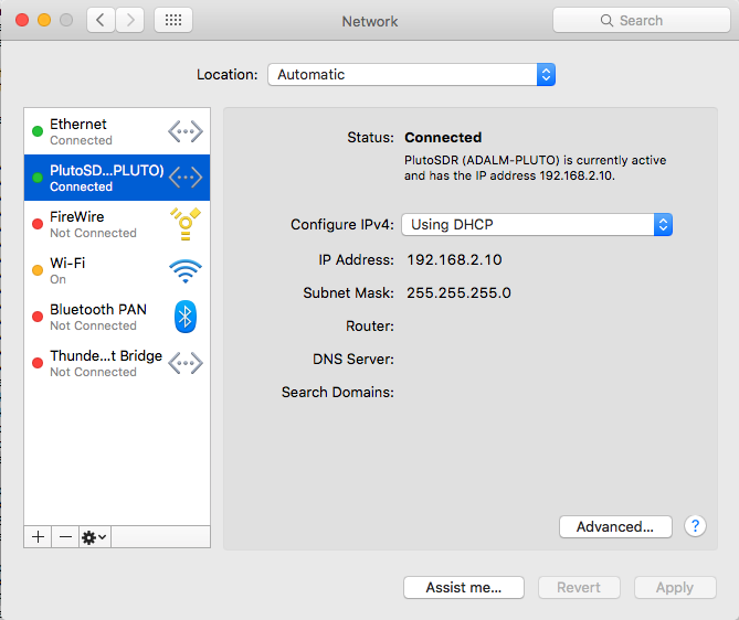 In this case, the IP address of the PLUTO device is 192.168.2.1 (which is the default for all devices). If you need to change this (if you have multiple devices), please check the customizing Pluto documentation.