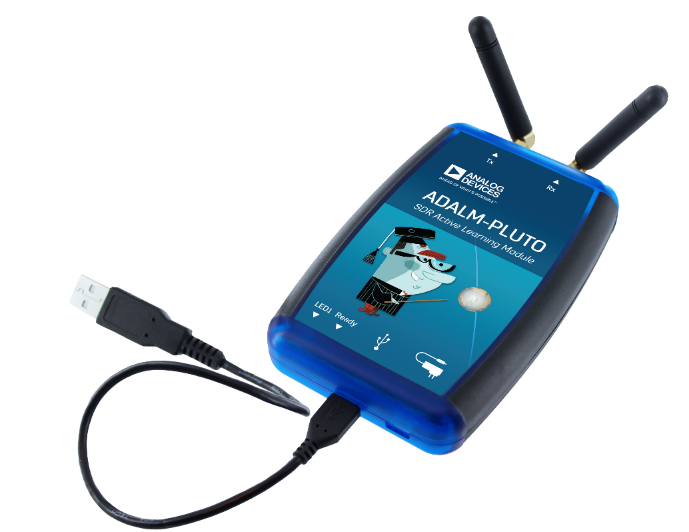 The ADALM‑PLUTO, commonly known as the Pluto SDR, is a portable, self‑contained software‑defined radio (SDR). It is designed primarily as an educational platform for students, hobbyists, and engineers to explore radio frequency (RF) concepts, wireless communication, and SDR fundamentals in a hands‑on environment. PlutoSDR acts as a personal RF lab that easily fits into a pocket and connects to a computer over USB. It supports a wide range of software environments including MATLAB, GNU Radio, C/C++/C#, Python, and SDRangel.
