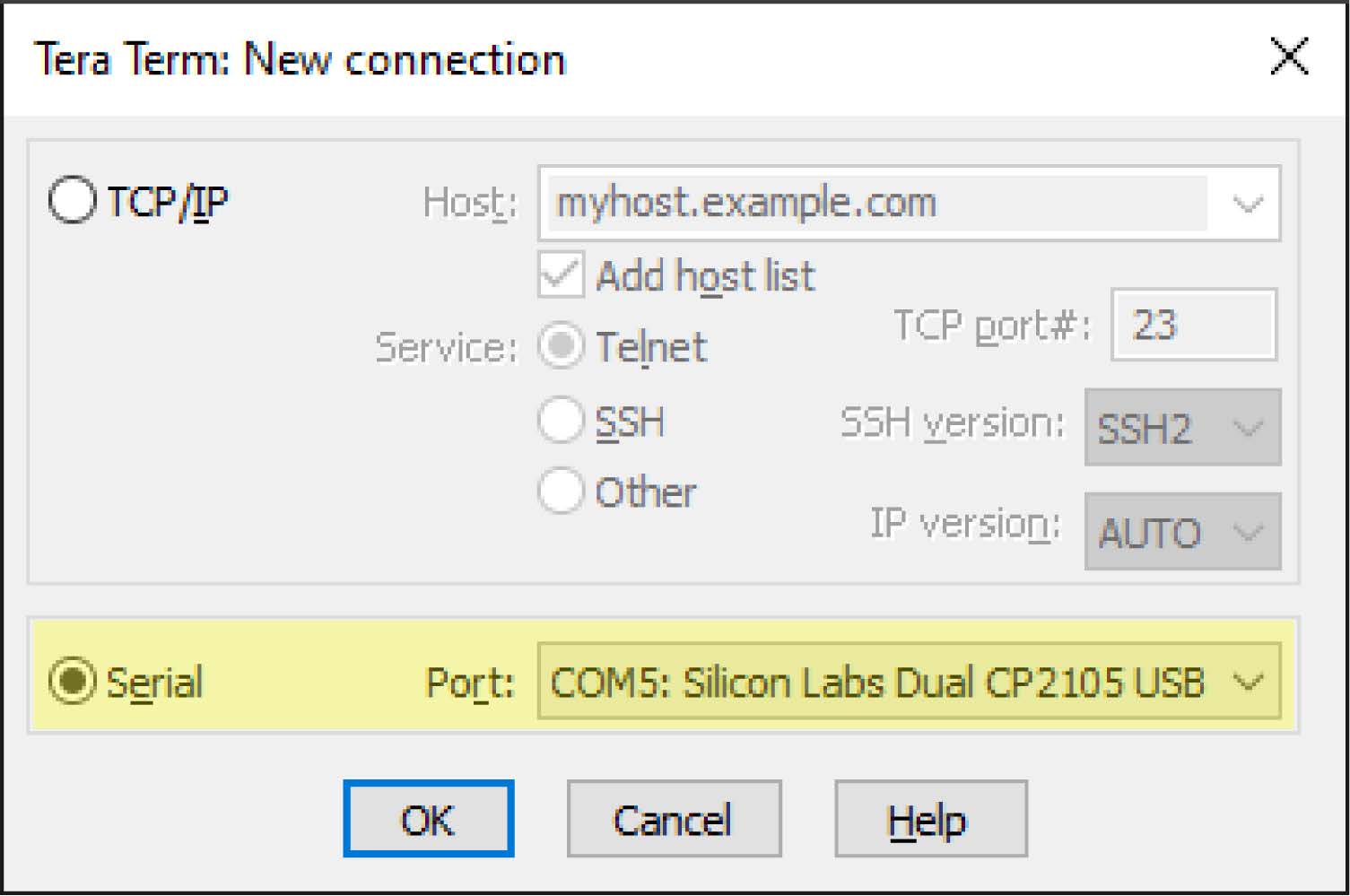 While programming the Xilinx VCU118 is in progress, open and start the serial terminal Tera Term session to observe the boot process and log in to the Xilinx VCU118. Start and connect the serial terminal Tera Term session using the COM port found previously. In Tera Term, click Setup -> Serial port … to set the speed to 115200. Continue monitoring the Xilinx VCU118 boot process. Once the process is complete, log in with the following information: