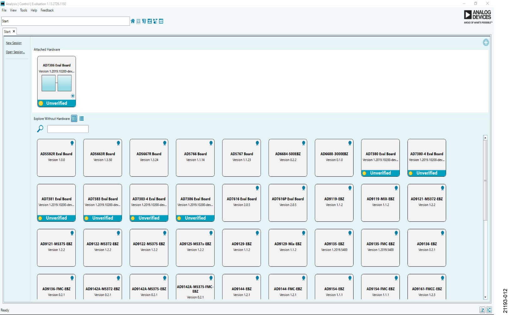 From the Start menu, select All Programs > Analog Devices > ACE > ACE.exe to open the main software window, as shown in Figure 12.