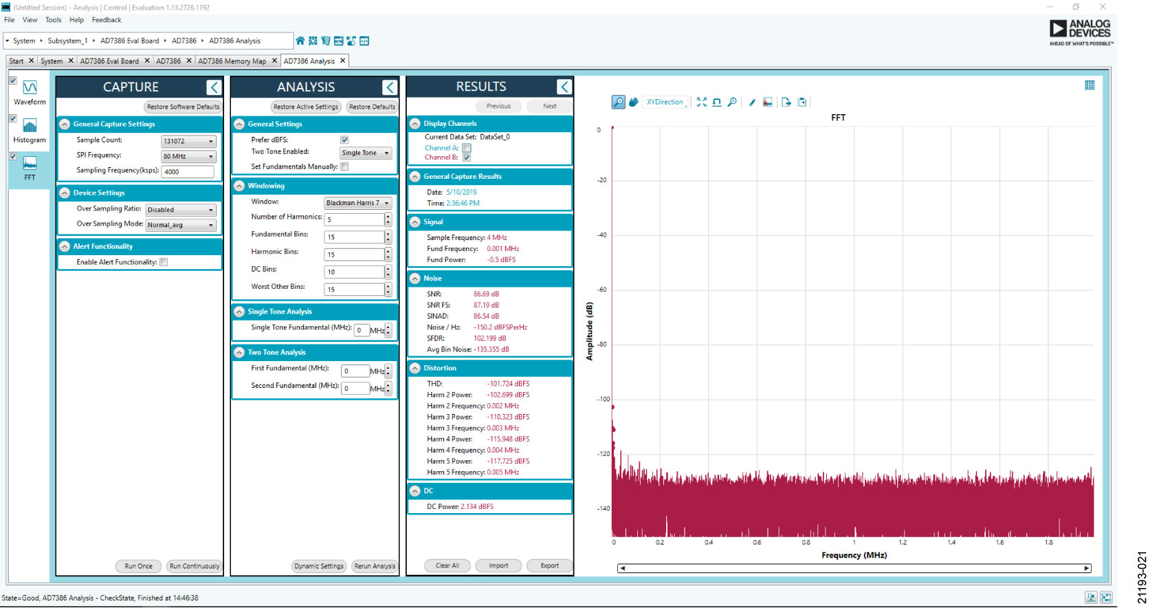 Click Proceed to Analysis in the chip view to open the window shown in Figure 18. The analysis view contains the Waveform tab, Histogram tab, and FFT tab.