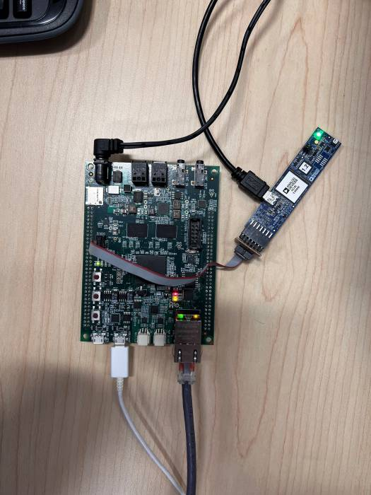 Board connected to the ICE 1000 or ICE 2000 via the DEBUG port on the board