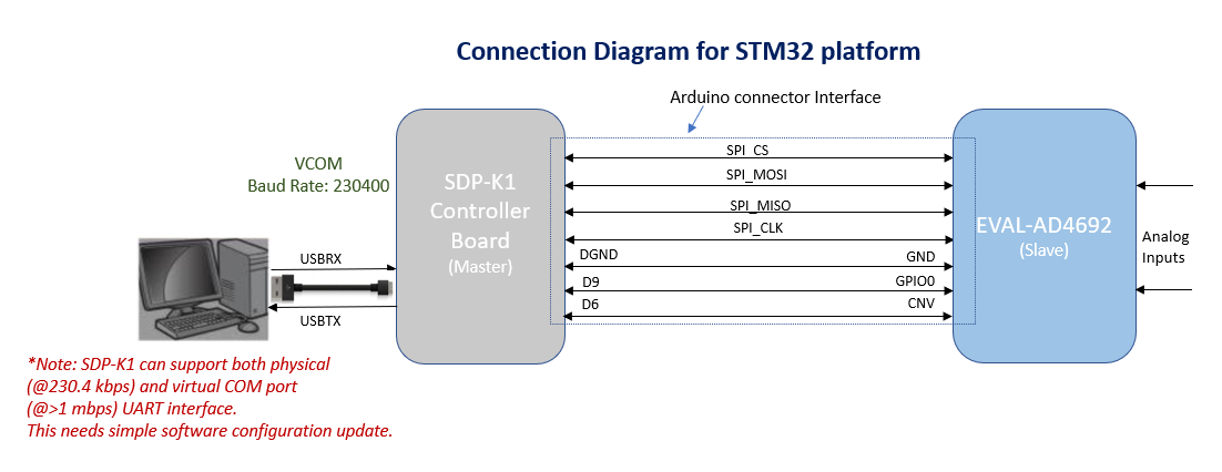 Required: SDP-K1 (or an STM32 board ), EVAL-AD4692 board and USB cable.